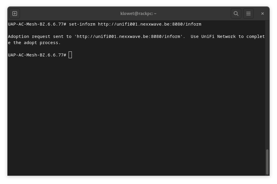 set-inform http://m123456.nexxplane.app:8080/inform(replace with your controller's address). - Detailed Information: For a complete walkthrough on how to adopt a UniFi device, refer to our blog article How to Adopt a UniFi Device: A Step-by-Step Guide.