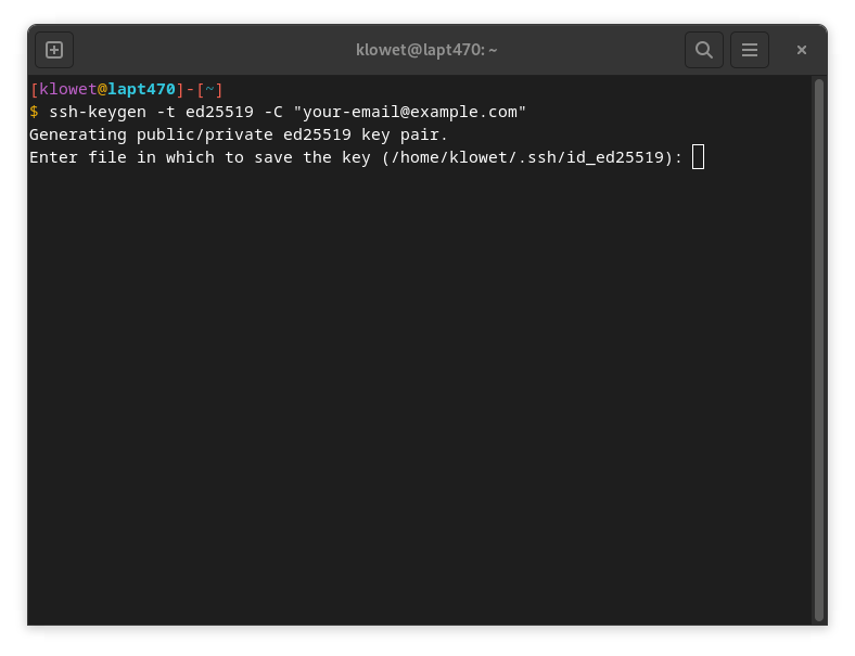 ssh-keygen -t ed25519 -C "your-email@example.com"