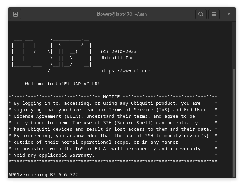 Congratulations! You're now logged in securely to your UniFi device using an SSH key!