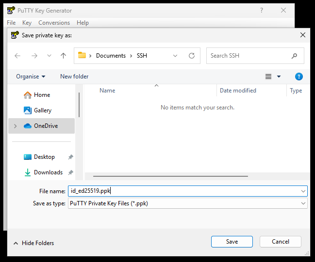 'id_ed25519.ppk'. Crucially, save your SSH keys within your own user folder (e.g.,C:\Users\YourUsername\.ssh\) and not in a location accessible to all users of the computer. This ensures your private key remains secure.